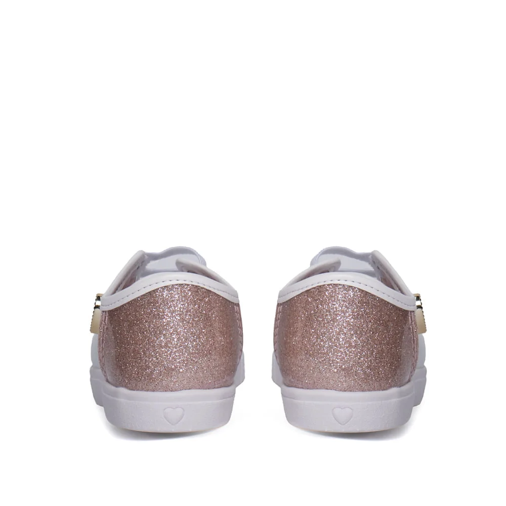 Confeccionado em napa de alta qualidade, o Tênis apresenta design moderno e versátil, com detalhe de coração na lateral, enfeite no cadarço e efeito brilho na parte traseira que deixam o visual ainda mais delicado. Ideal para usar no dia a dia ou em ocasiões especiais. Tem cadarço elástico e conta com tecnologia calce fácil. Já o solado em PVC antiderrapante oferece estabilidade a cada passo.
