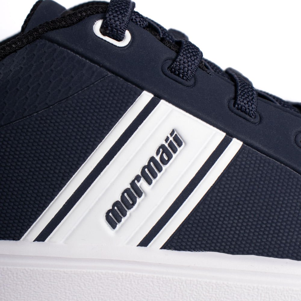 Um dos destaques deste tênis é a lateral com o emblema da marca Mormaii, que não apenas reforça a autenticidade, mas também adiciona um toque de estilo reconhecível.