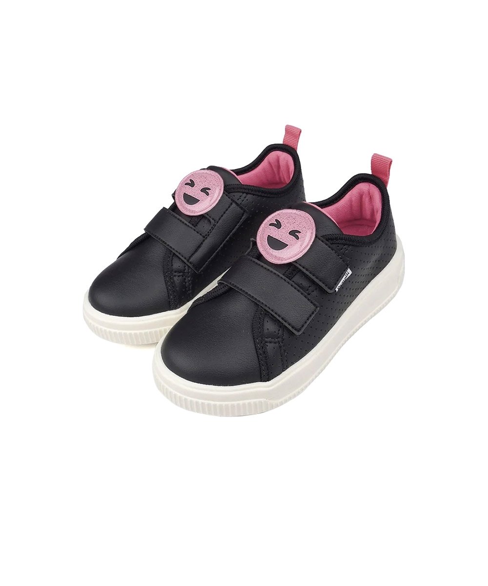 Confeccionado em material sintético preto com perfuros, ele traz um patch removível de carinha com glitter, cheio de charme e personalidade, que encanta as meninas em qualquer ocasião. Seu forro interno respirável ajuda na absorção do suor, enquanto a espuma no calcanhar e a palmilha anatômica garantem máximo conforto durante o uso escolar ou nos passeios.