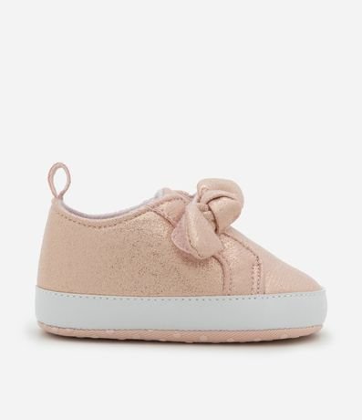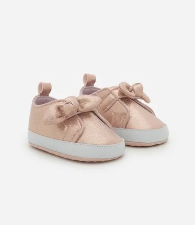 Ref: Tênis infantil texturizado confeccionado em material macio com acabamento brilhante. Possui laço aplicado no peito do pé, sola flexível antiderrapante e alça traseira que facilita o calce, garantindo conforto, segurança e um visual delicado para os primeiros passinhos.