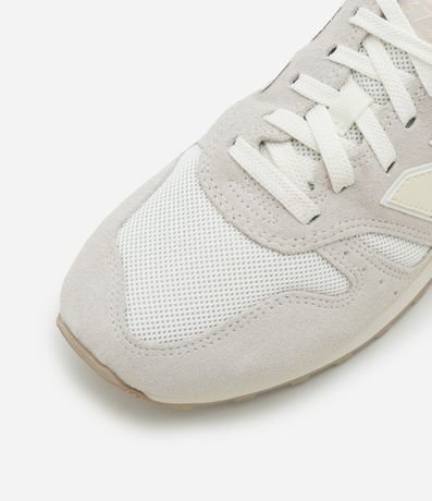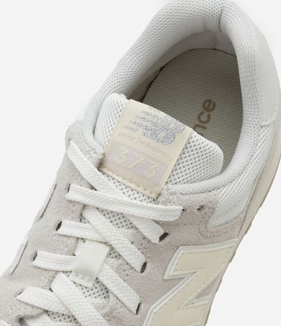 Ref: Tênis feminino jogging esportivo com bico redondo com trava, recortes, cardarço, cano baixo, sola baixa. Peça New Balance 373V2 confeccionada em couro.