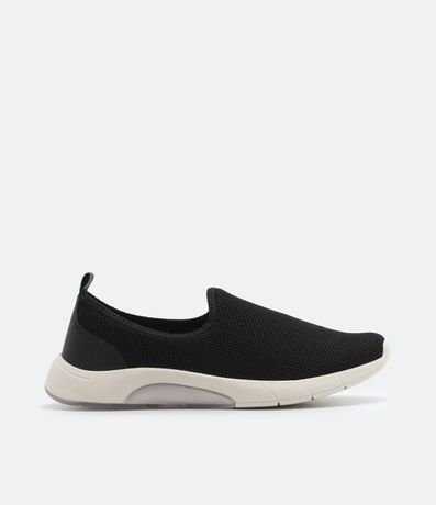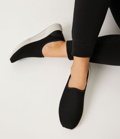 Tênis feminino modelo knit, com cano baixo, puxador no calcanhar, sem cadarço, em material têxtil e com detalhe de palmilha confortável.