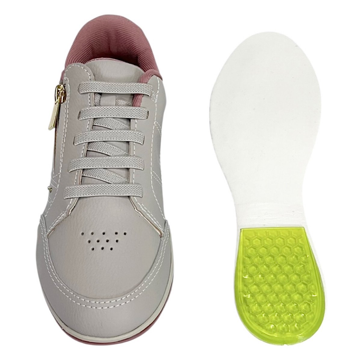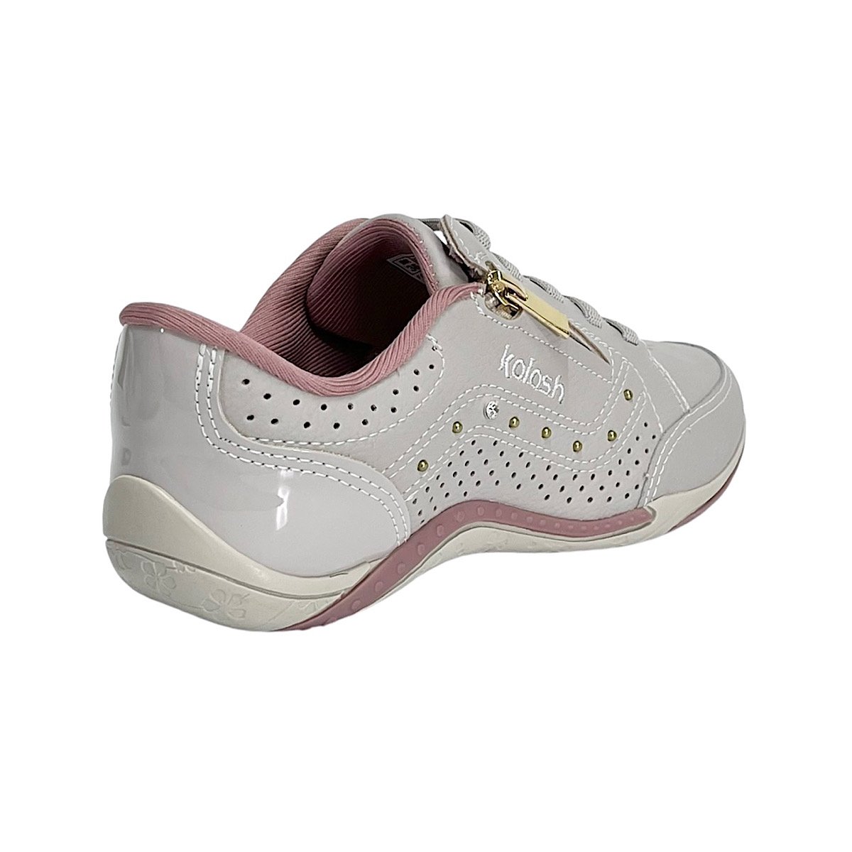 Ref: O tênis feminino Kolosh C1299 é a escolha ideal para quem busca conforto aliado a um visual moderno e delicado para o dia a dia. Na versão em cinza claro com detalhes em rosa, o modelo ganha um toque feminino e versátil, perfeito para compor diferentes looks com praticidade. O cabedal apresenta microperfurações que auxiliam na respirabilidade dos pés, além das aplicações que valorizam o design. O calce é facilitado pelo uso de elásticos e pelo fecho lateral funcional, proporcionando ajuste rápido e seguro. A palmilha com inserção em gel amplia a sensação de maciez e contribui para uma pisada mais confortável durante as caminhadas, enquanto o solado leve e flexível garante estabilidade e liberdade nos movimentos ao longo da rotina.