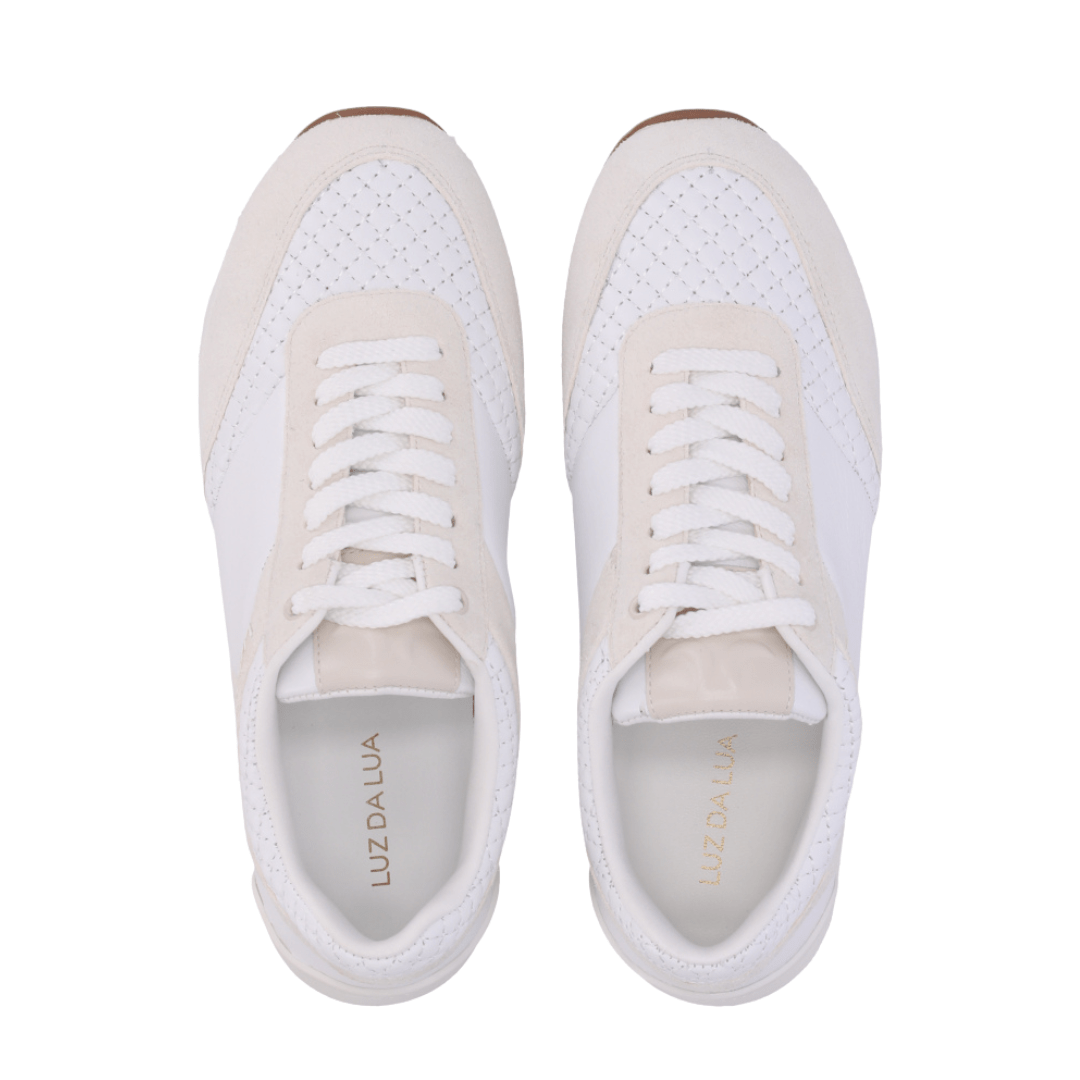 Realce seu estilo com o Tênis Luz da Lua Feminino Branco Panna Couro Camurça.