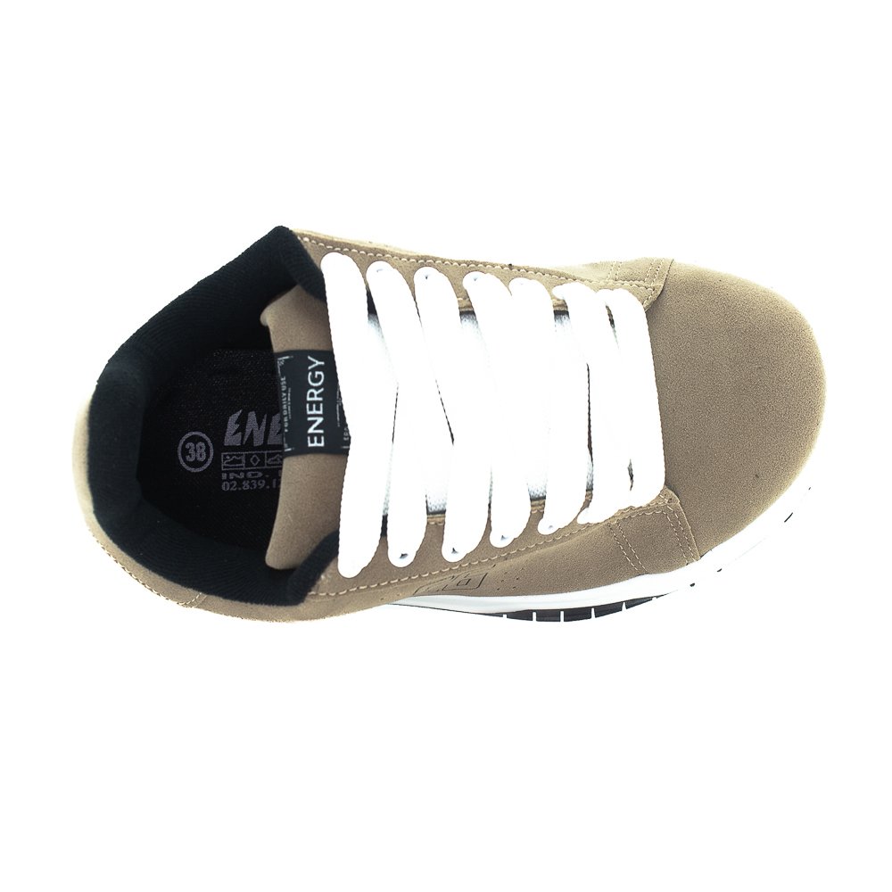 Ref: Com uma pegada urbana e moderna, este tênis Energy 66 na cor marrom é sinônimo de autenticidade e praticidade. Seu cabedal em material sintético de toque suave traz sofisticação discreta, enquanto o contraste dos cadarços brancos e do forro preto reforça o estilo descolado. O logo lateral estilizado com estrela dá personalidade ao visual, enquanto o solado branco com base antiderrapante preta garante conforto e segurança em qualquer rotina. Ideal para quem quer se destacar sem abrir mão do conforto e da versatilidade.