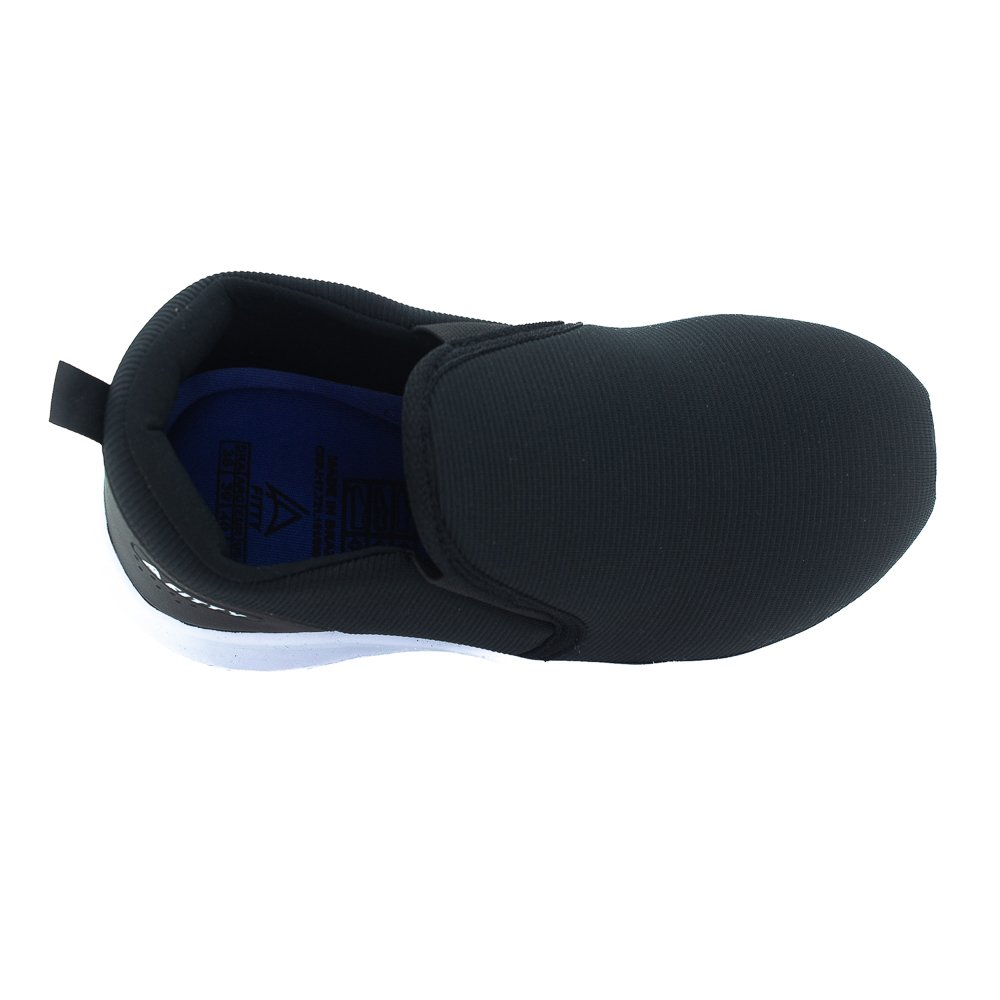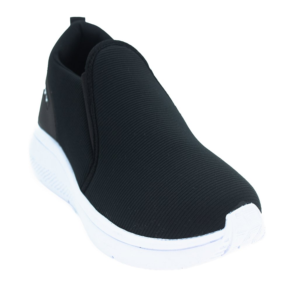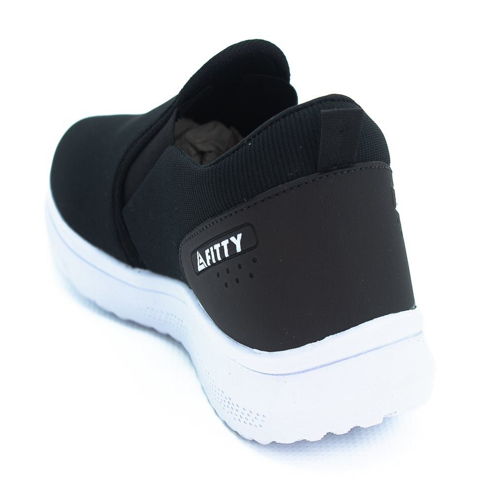 Esse modelo slip on da marca Fitty combina praticidade com um visual moderno e esportivo. Com cabedal em tecido elástico preto e solado branco emborrachado, ele proporciona um contraste elegante e versátil. A parte traseira conta com um detalhe emborrachado com o logo da marca, reforçando a identidade e garantindo mais durabilidade.