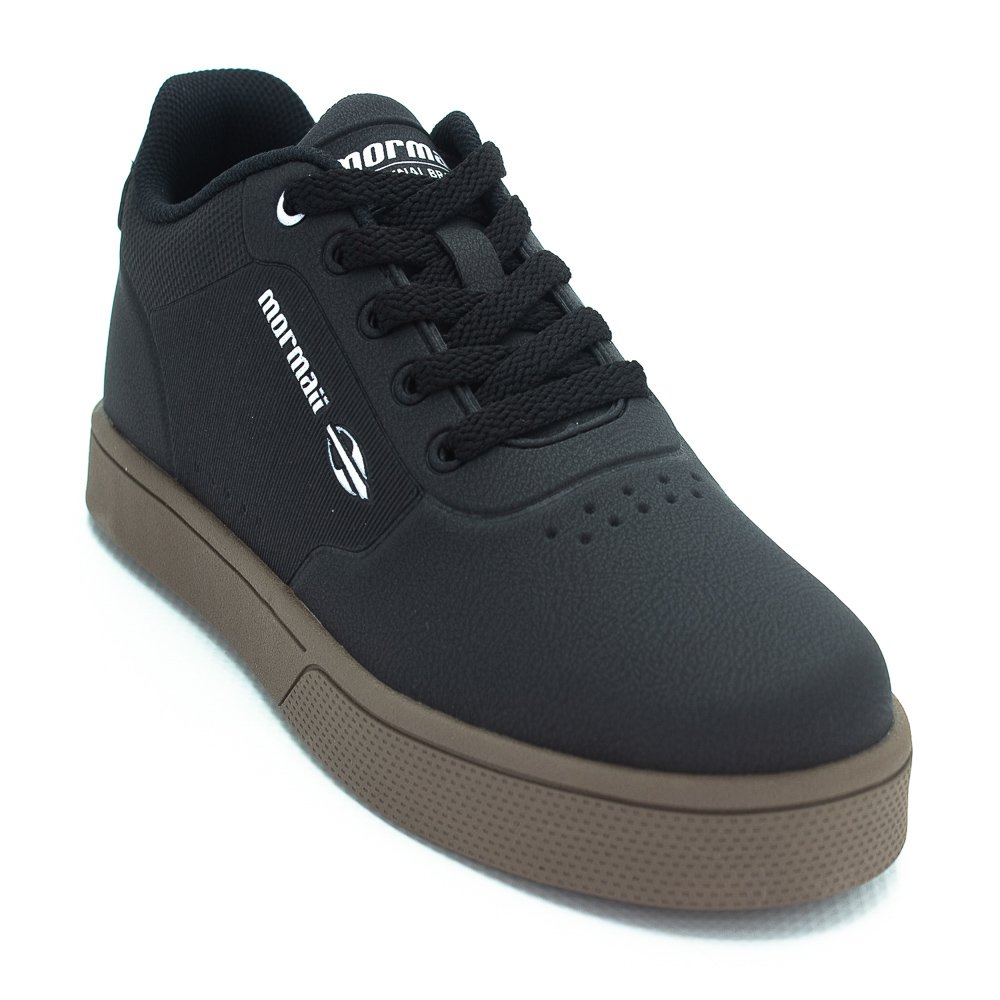 Ref: Esse tênis da Mormaii é a escolha perfeita para quem busca estilo, conforto e praticidade no dia a dia. Com design moderno e perfil clean, ele traz o preto clássico em contraste com o solado marrom ? um toque sutil que faz toda a diferença no visual. Confeccionado com material resistente e de fácil manutenção, possui fechamento por cadarço e uma estrutura que garante ajuste firme e confortável. O logo da marca aparece em destaque nas laterais e na lingueta, reforçando a vibe esportiva com identidade. Ideal para quem vive o ritmo da cidade, mas não abre mão de um visual descomplicado e cheio de atitude.
