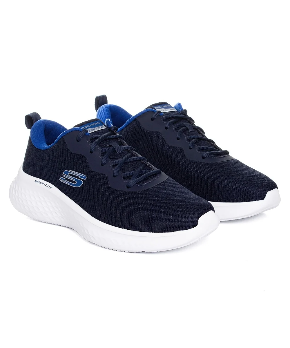 Este modelo masculino da Skechers, o LitePro, é ideal para quem busca conforto e estilo em calçados para o uso diário ou leve atividade física. O cabedal em mesh knit respirável se ajusta ao pé como uma meia, favorecendo ventilação e flexibilidade.