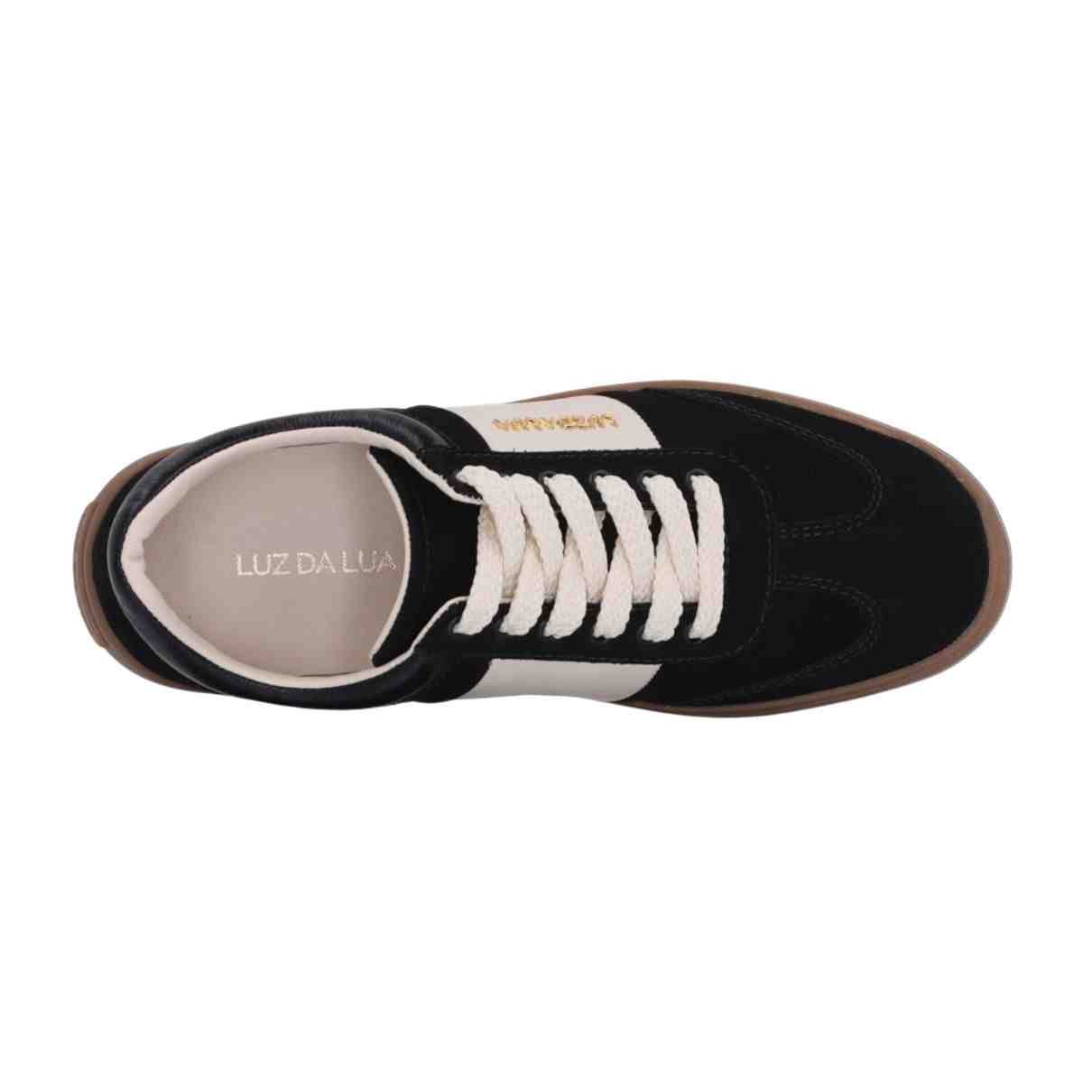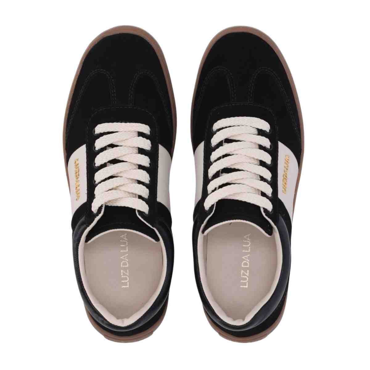 O tênis casual feminino Luz da Lua 60710009-4 traduz modernidade e sofisticação em um design que explora o contraste entre tons clássicos. A combinação de cervo preto com couro saara panna cria um visual bicolor elegante, equilibrando força e leveza em uma proposta contemporânea.