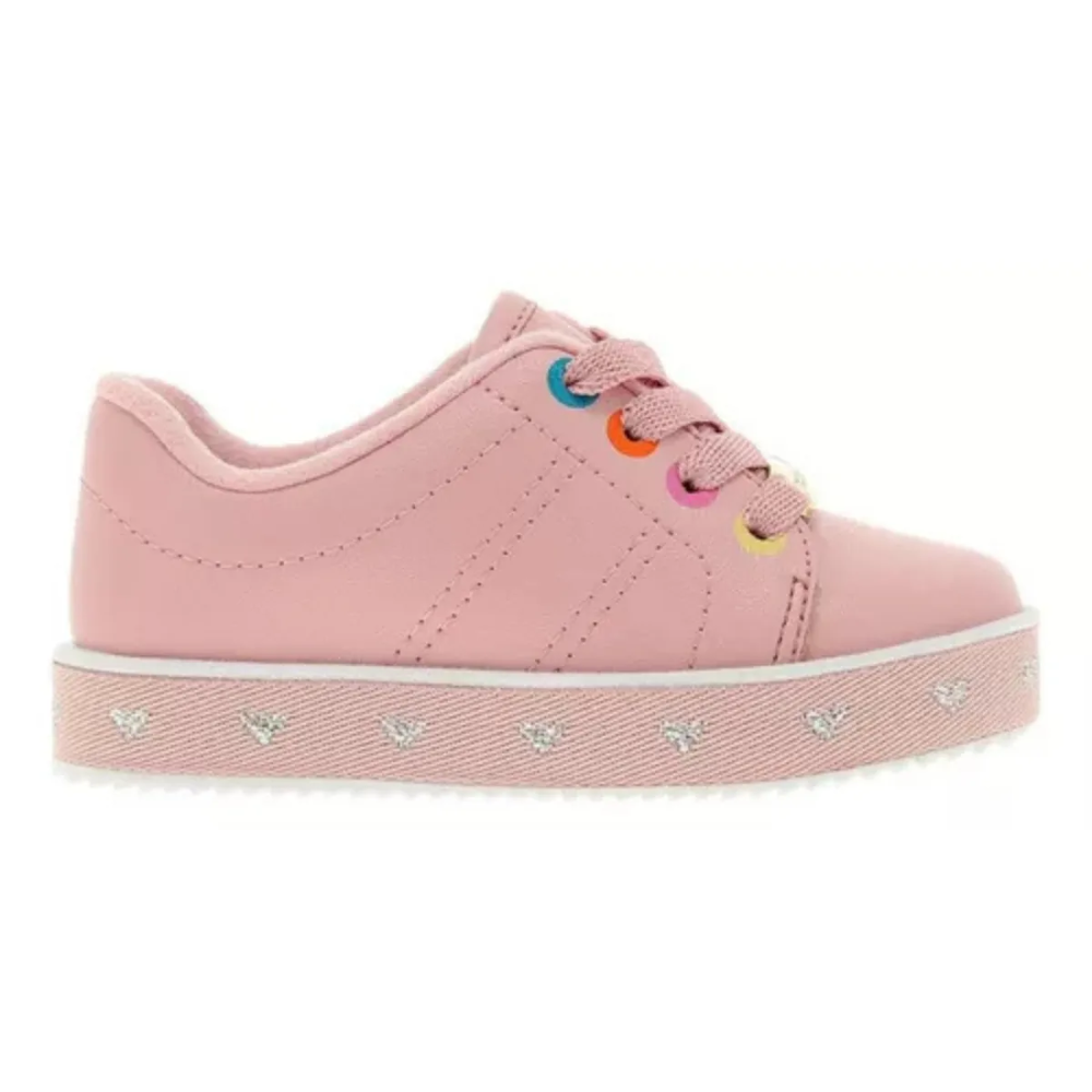 Tenis Molekinha Rosa Coracoes Detalhes Ilhos Meninas