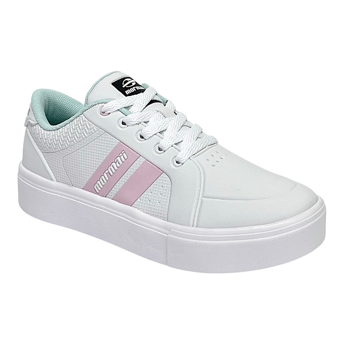 O Tênis Mormaii Urban Strike 3 Plataforma feminino foi pensado para quem ama um visual jovem, moderno e cheio de personalidade. Com design urbano e atual, ele combina a cor branca com detalhes laterais em lilás, trazendo um toque delicado e estiloso que conversa perfeitamente com o público infantojuvenil. O forro em tecido verde claro deixa o interior ainda mais bonito e confortável, proporcionando uma sensação agradável desde o primeiro uso. Seu cabedal em material sintético garante resistência para a rotina, enquanto a palmilha macia oferece conforto extra para acompanhar o dia inteiro, seja na escola, nos passeios ou nos momentos de lazer. O grande destaque fica por conta do solado em PVC no estilo plataforma, com altura de 2,5 centímetros, que adiciona um visual fashion sem abrir mão da estabilidade. O fechamento por cadarços permite ajuste seguro e personalizado, tornando esse tênis casual uma escolha perfeita para quem gosta de conforto, atitude e estilo em cada passo.