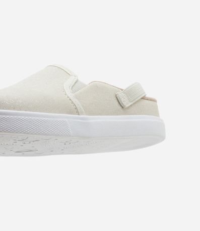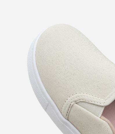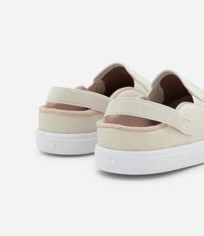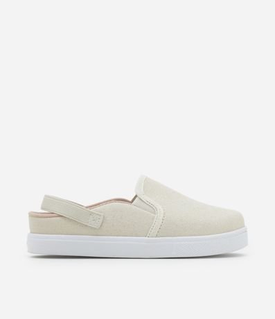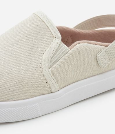 Tênis infantil modelo mule, slip on, com elástico traseiro e glitter.