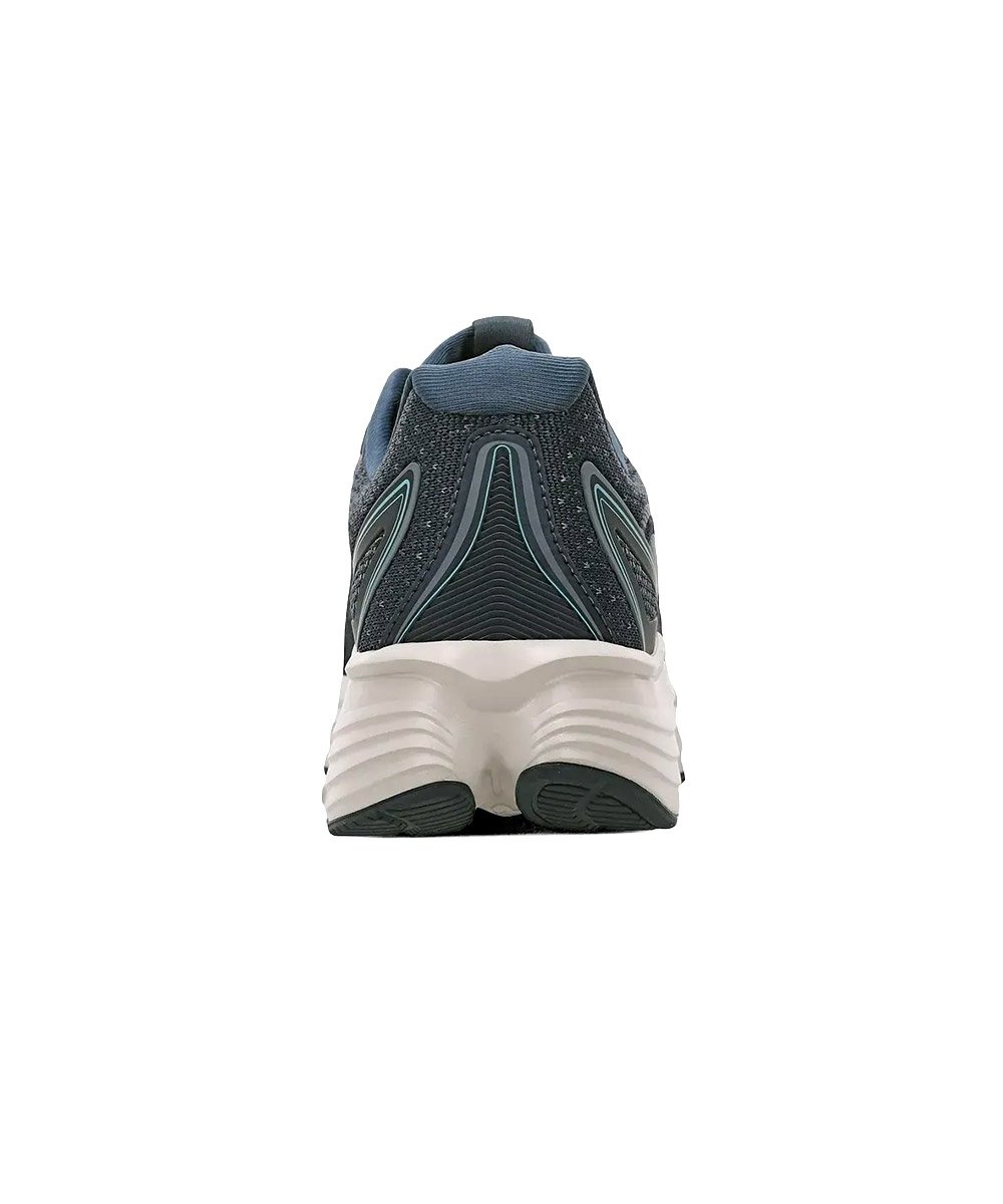 A parte superior é confeccionada em tecido knit multicolorido com tecnologia Hypersox, proporcionando leveza e respirabilidade. A lingueta em tecido dupla face oferece alta capacidade de transpiração, complementada por um puxador em fita com aplicação gráfica.