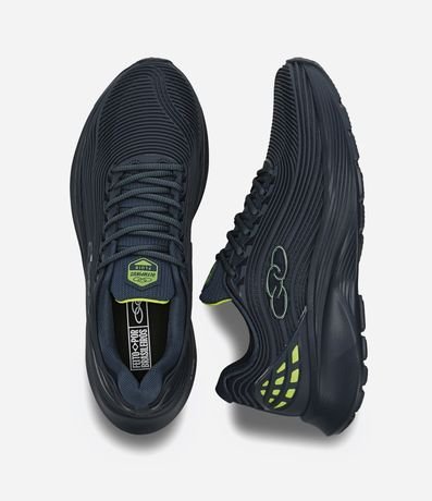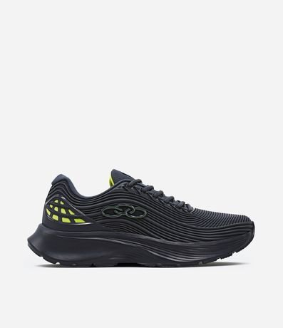 Tênis masculino no modelo Olympikus Fluir, com bico redondo, cadarço, detalhe de recortes contrastantes, textura e sola baixa.