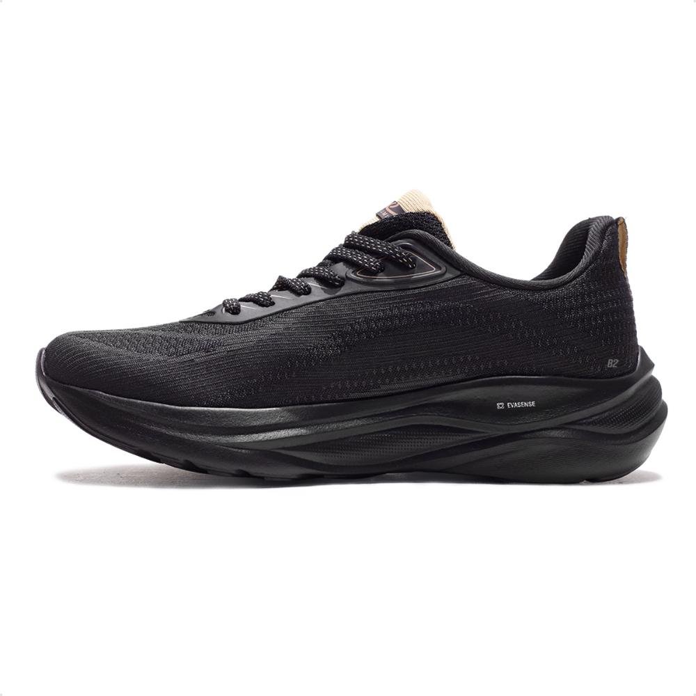 O solado com tecnologia EVASENSE é o grande destaque do modelo, oferecendo leveza, maciez e flexibilidade, garantindo uma pisada mais suave e natural.