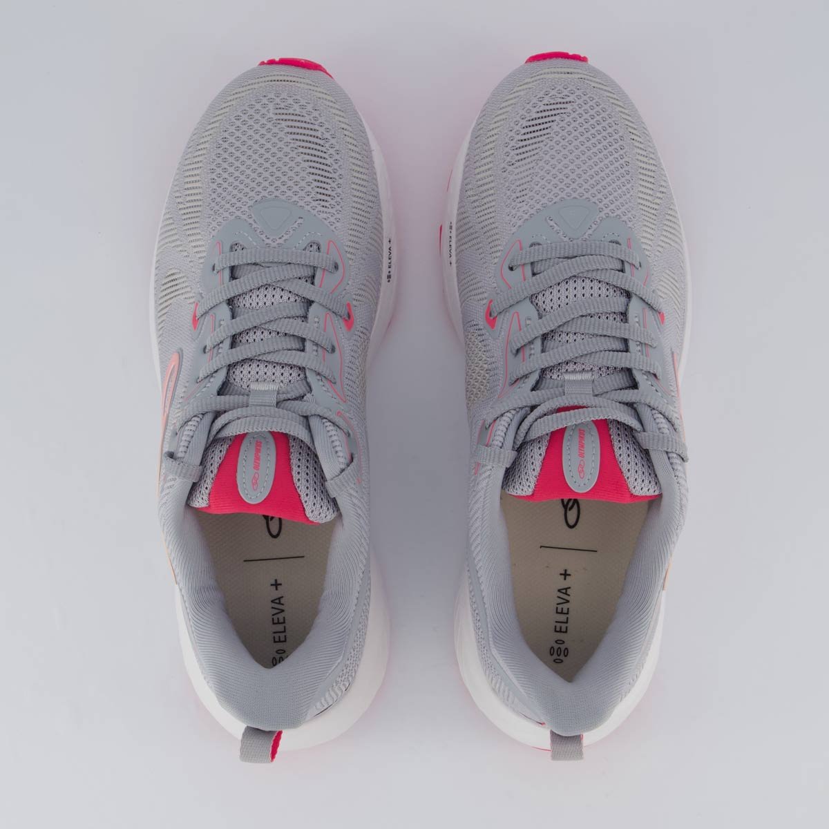 Eleva+: Tecnologia que explora o limite de expansão do EVA para alcançar máxima resposta, proporcionando o efeito trampolim, absorvendo o impacto da passada e transformando essa energia em impulsão.
