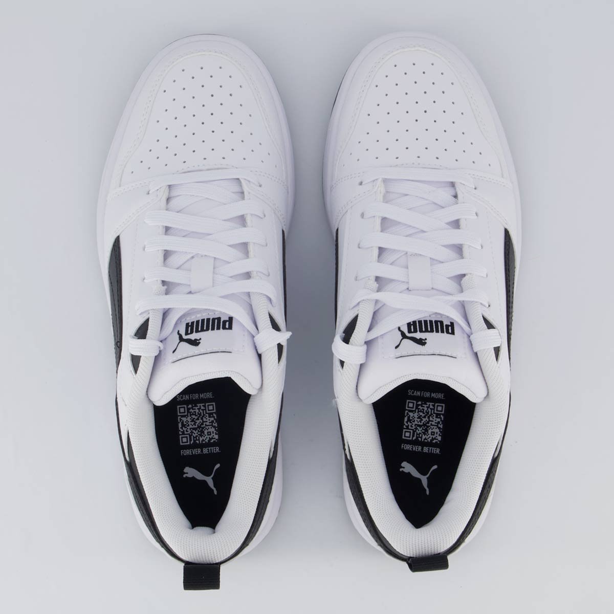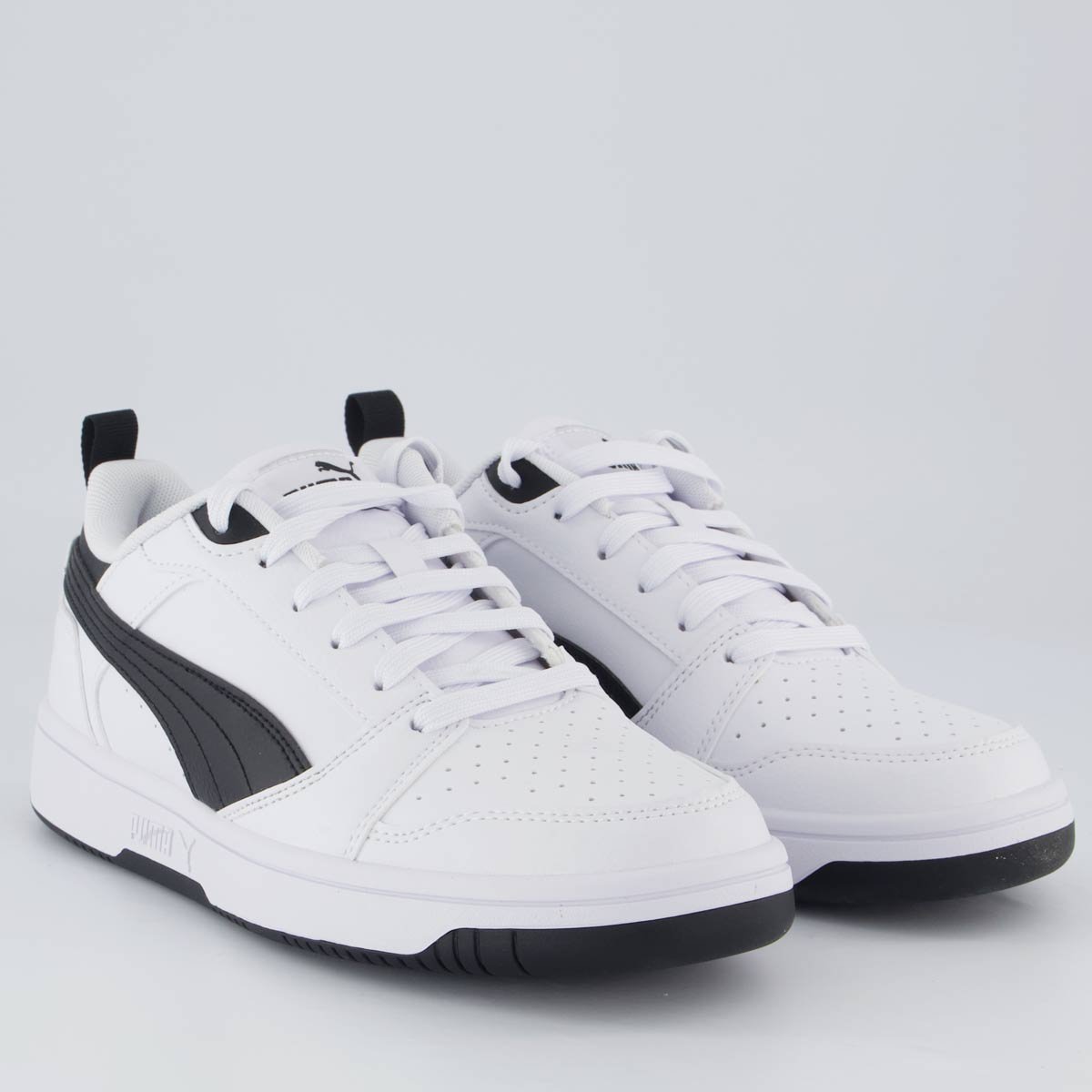 Tênis Puma Rebound V6 LO Jr. Juvenil Branco e Preto