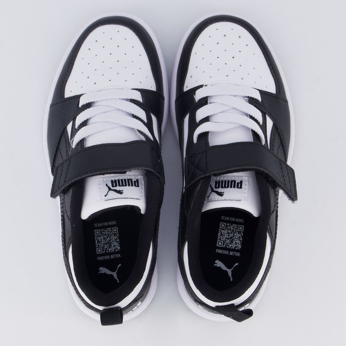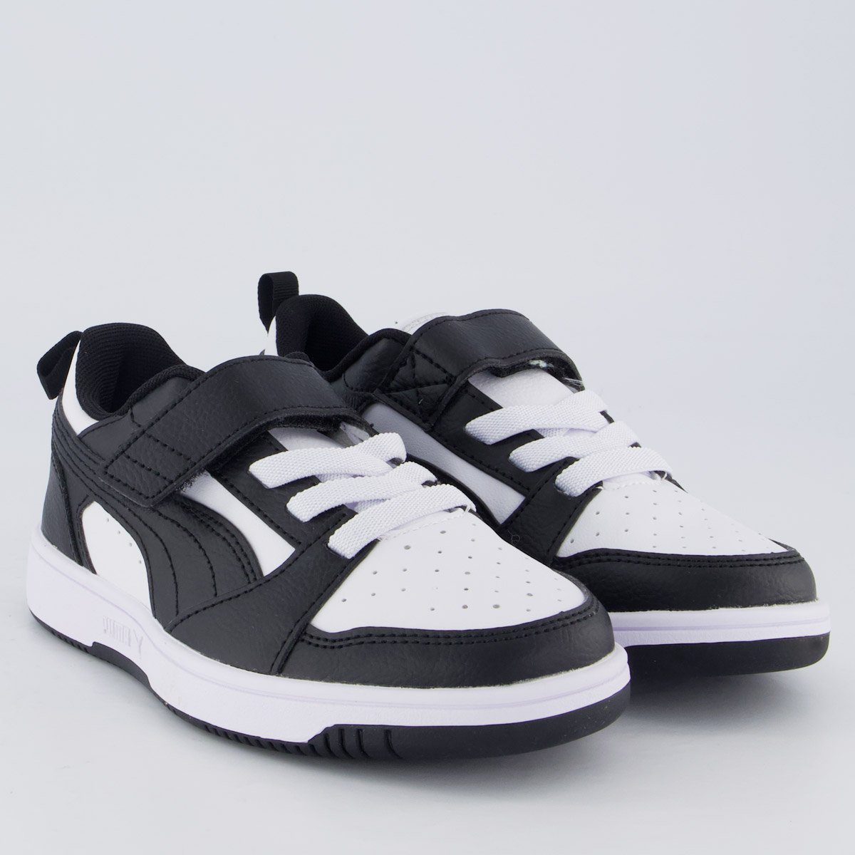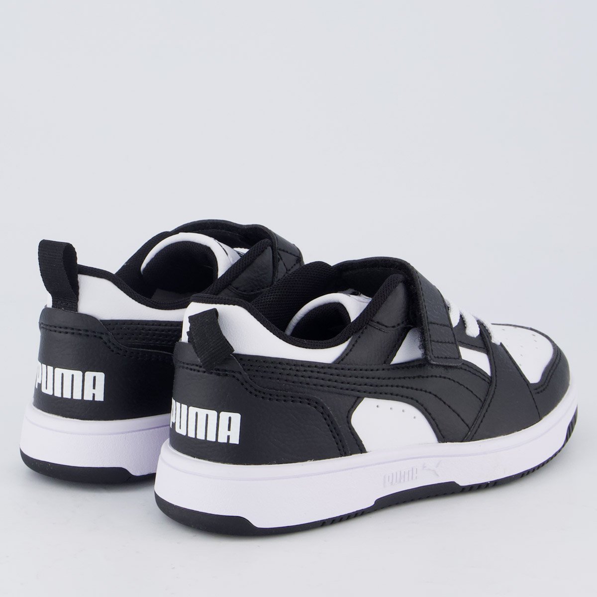 Tênis Puma Rebound V6 LO Juvenil Branco e Preto