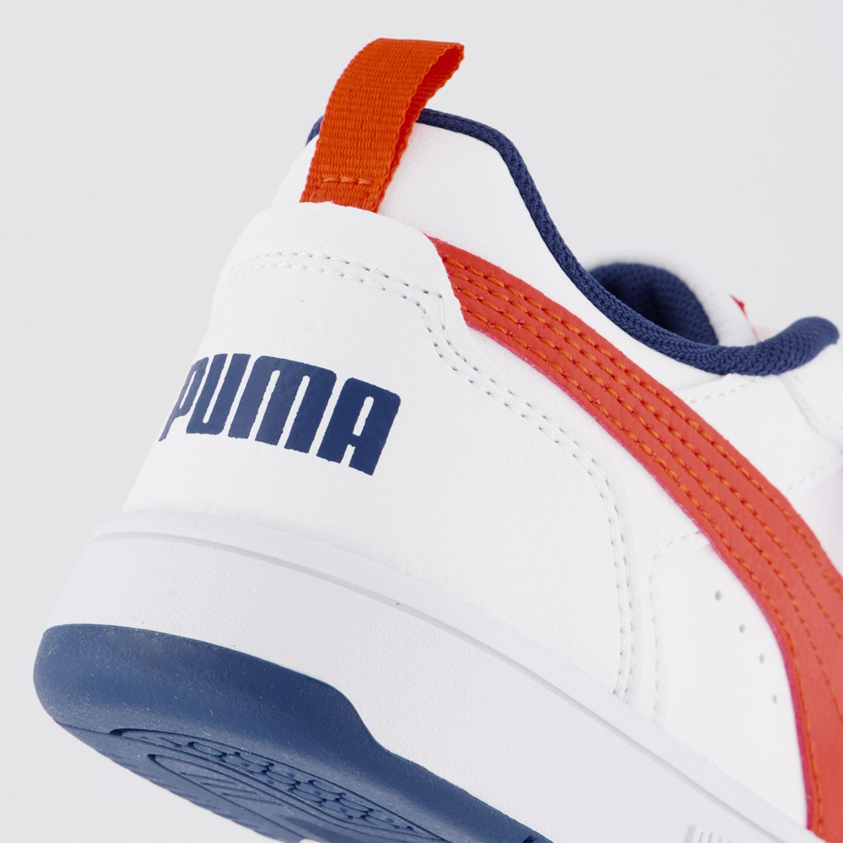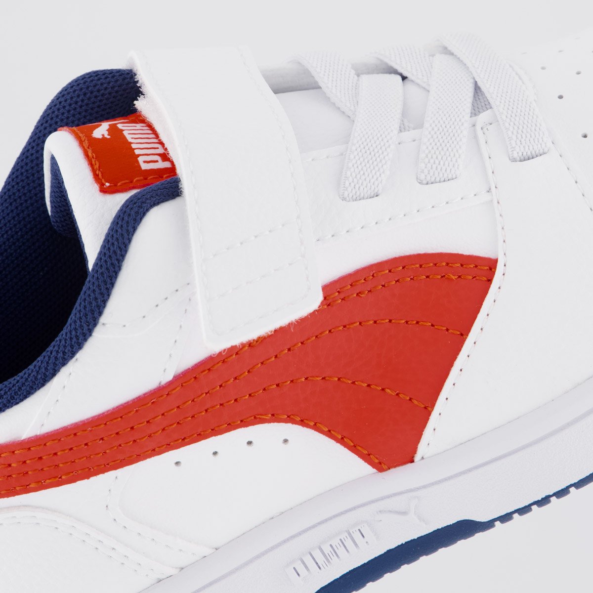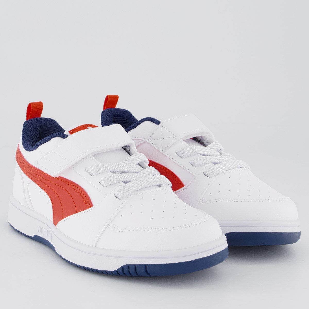 Tênis Puma Rebound V6 LO Juvenil Branco e Vermelho