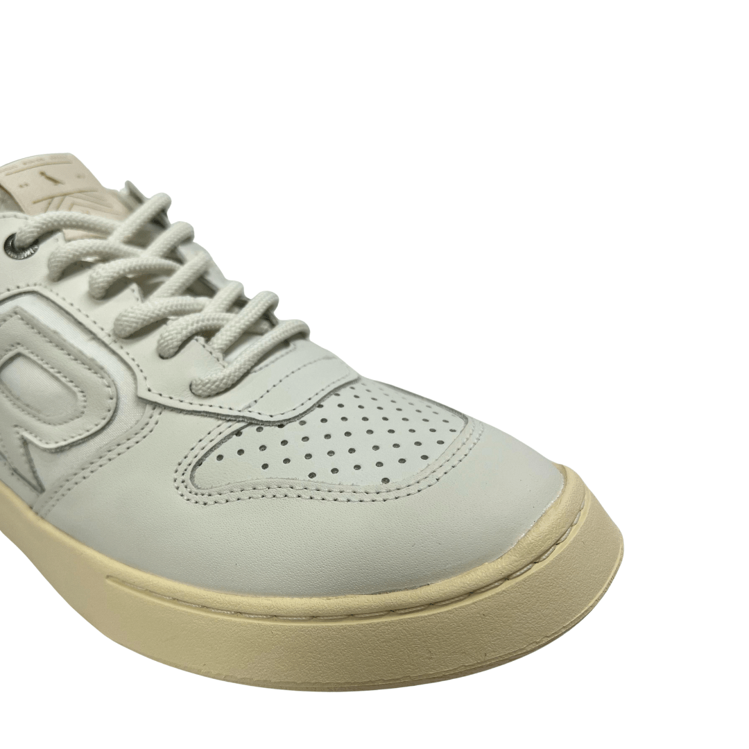O cabedal, composto por neoprene e couro, garante uma durabilidade excepcional e um ajuste perfeito aos seus pés. A cor predominante gelo adiciona um toque de sofisticação e modernidade, fazendo deste tênis uma peça chave no seu guarda-roupa.