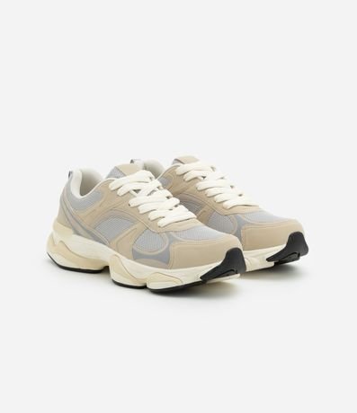 Ref: Tênis running masculino, confeccionado em poliéster, com amarração de cadarço, recortes, caixa alta, com recortes e texturizado.