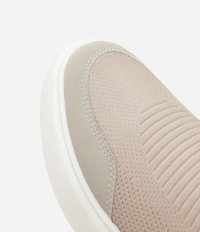 Ref: Tênis masculino, em material sintético, no modelo slip on. Modelo contém detalhes em recortes com bico redondo, sem fechamento e solado contrastante.