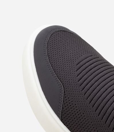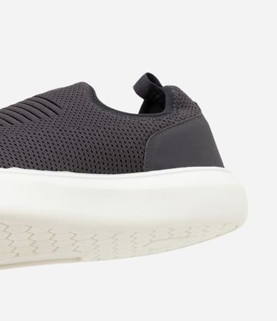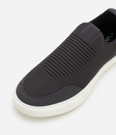 Ref: Tênis masculino, em material sintético, no modelo slip on. Modelo contém detalhes em recortes com bico redondo, sem fechamento e solado contrastante.