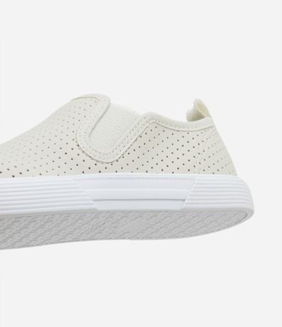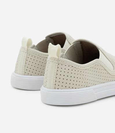 Ref: Tênis infantil texturizado modelo slip on, com cano curto, puxador aplicado, bico redondo, detalhes elásticos nas laterais e sola contrastante.