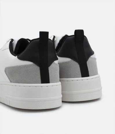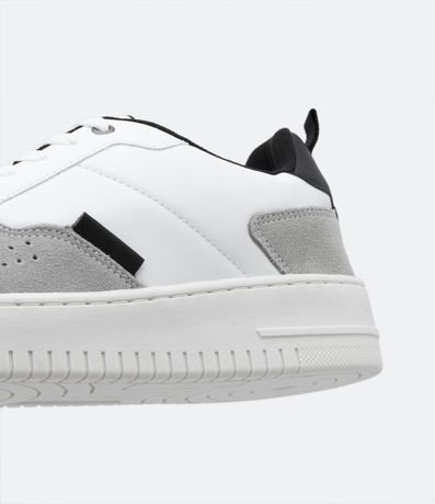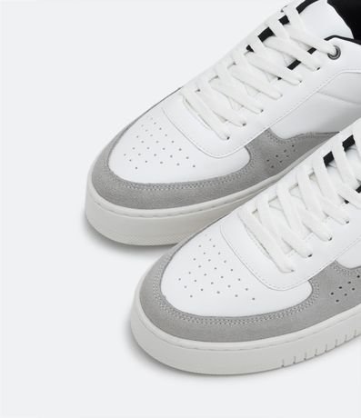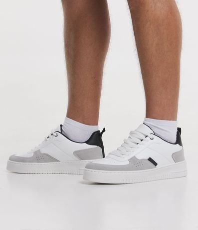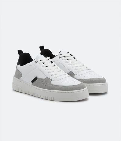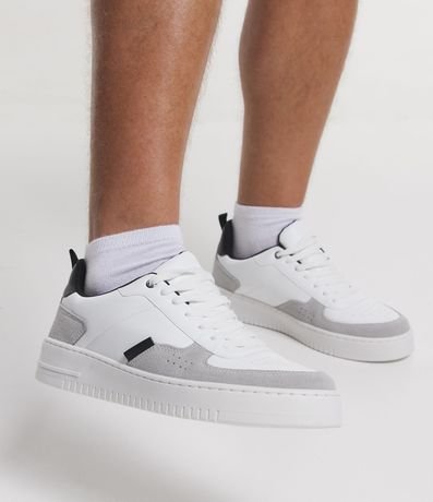 Ref: Tênis street em pu, com cano baixo, fechamento por cadarço, recortes contrastantes em camurça e bico arredondado.