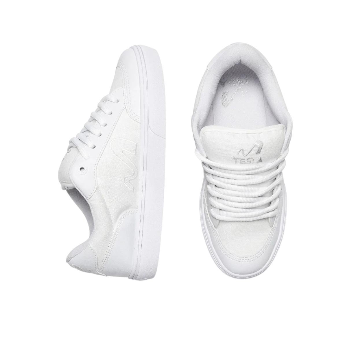 O Tenis Tesla Flow ALL white e ideal para quem quer se expressar com atitude e originalidade ? seja nas ruas, no role com os amigos ou no dia a dia