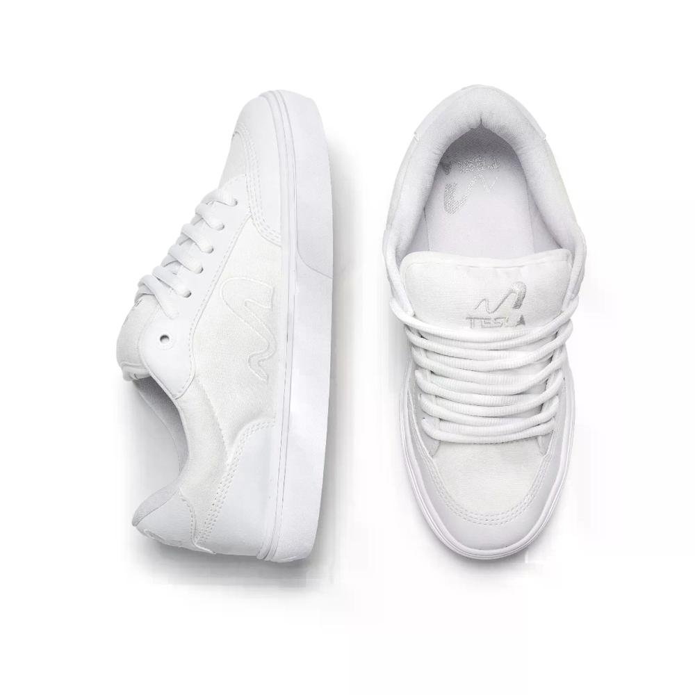 Ref: Tênis Tesla Flow traduz o estilo das ruas em cada detalhe. Com um design urbano autêntico, ele combina atitude, conforto e versatilidade para quem vive o movimento da cidade,Design Streetwear Autêntico: Visual moderno com linhas inspiradas na cultura urbana, ideal para quem busca estilo e atitude no dia a dia. Cabedal Premium: Combinação de lona com couro sintético, reforçado por costuras firmes e recortes marcantes que elevam o design e a durabilidade. Identidade Tesla: Logo aplicado em destaque na lateral, reforçando a autenticidade e exclusividade do modelo. Solado de Alta Performance: Desenvolvido em borracha de alta resistência, oferece máxima firmeza ao caminhar, excelente aderência em diferentes superfícies e durabilidade superior. O design exclusivo é valorizado por cores únicas, unindo funcionalidade e personalidade. Conforto em Cada Passo: Palmilha em PU com tecnologia de amortecimento que reduz o impacto e proporciona maior bem-estar.Detalhes Urbanos: Cadarços resistentes e acabamento limpo, completando o estilo urbano. Tênis Tesla Flow All White é ideal para quem quer se expressar com atitude e originalidade — seja nas ruas, no rolê com os amigos ou no dia a dia.