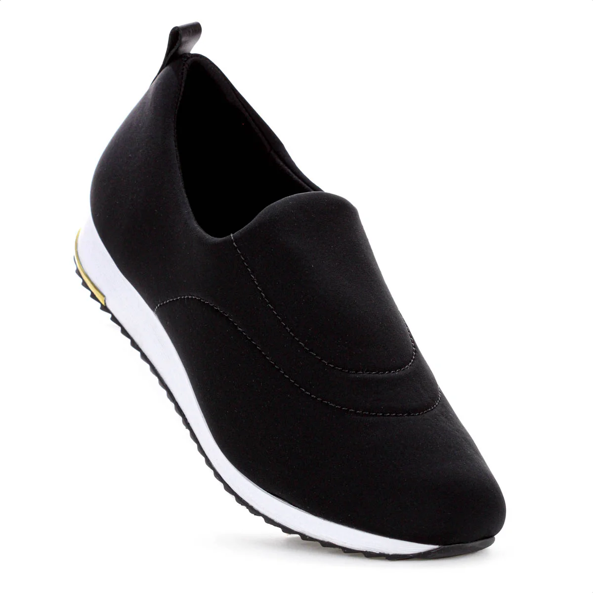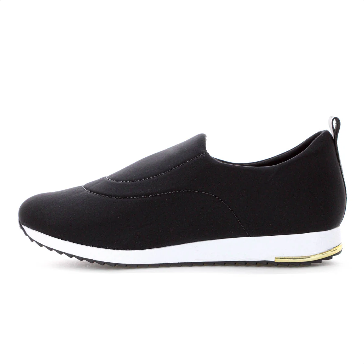 Tenis Usaflex Slip On Elastano Detalhe Costura Preto - Feminino