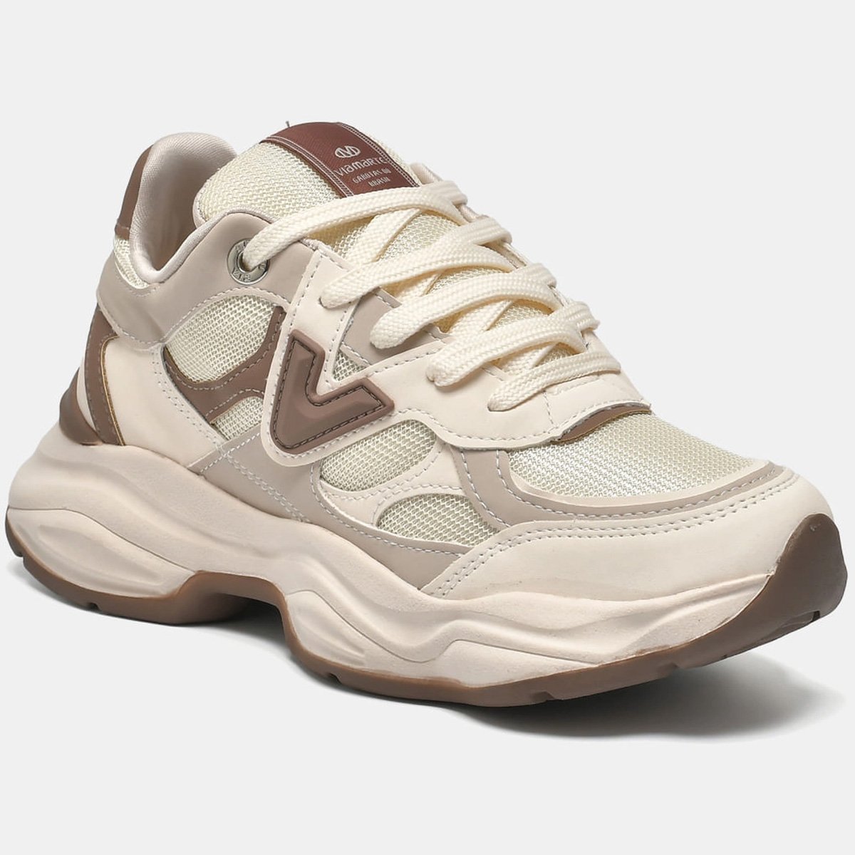 Tenis casual chunky com design marcante e cheio de atitude, ideal para quem ama tendencias. Apesar da aparencia robusta, oferece leveza e conforto em cada passo. O cabedal macio se ajusta ao pe, garantindo bem-estar ao longo do dia. Destaque para o detalhe emborrachado na lateral, que traz o logo da marca Via Marte com estilo. Solado imponente proporciona estabilidade e personalidade ao visual. Perfeito para compor looks urbanos e modernos com autenticidade. Nome: Tenis Via Marte 158-023 Origem: Nacional Genero: Feminino Material cabedal: Sintetico Material Forro: Textil Cor Predominante: Marfim Indicado para: Dia a Dia e Uso Casual Altura do cano: Baixo Solado: Borracha Amarracao: Cadarco Palmilha: EVA e Tecido "Trabalhamos apenas com produtos 100% originais, com Garantia do fabricante:Contra defeito de fabricacao."
