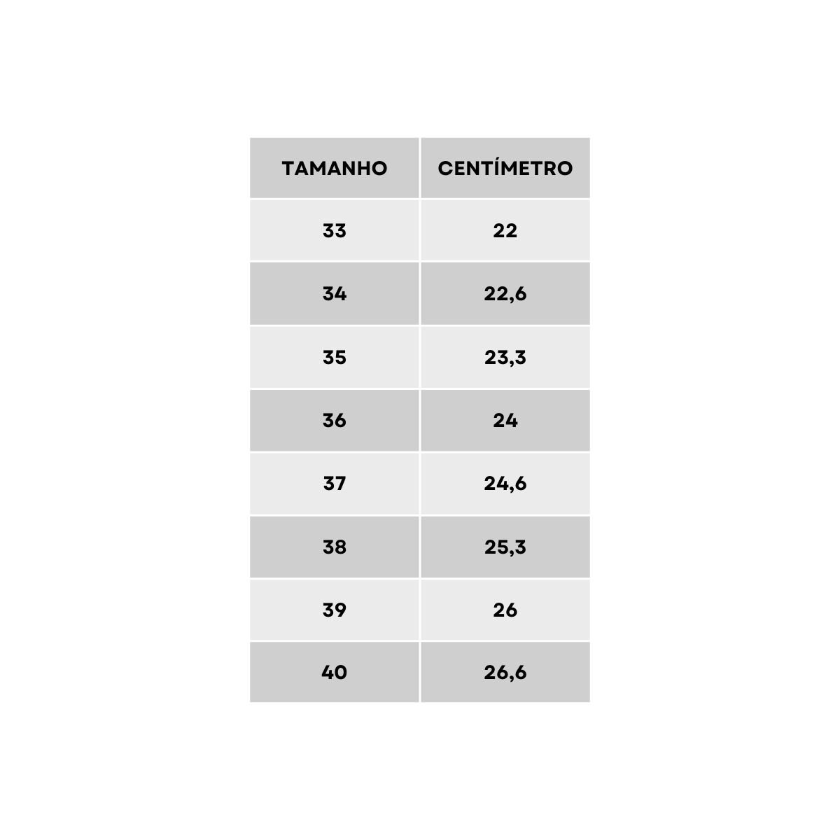 O modelo slip-on facilita o calce, trazendo praticidade para a rotina. Já o cano acolchoado e a lingueta simples aumentam o conforto. O solado emborrachado, com aproximadamente 3 cm de altura, conta com frisos antiderrapantes, oferecendo mais segurança e estabilidade ao caminhar. O cano mede cerca de 5 cm, complementando o ajuste confortável.
