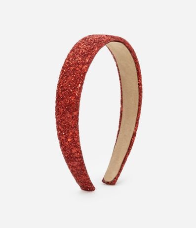 Tira de cabelo infantil confeccionada em poliéster, sem estampa e com aplicação de brilhos por toda a peça.