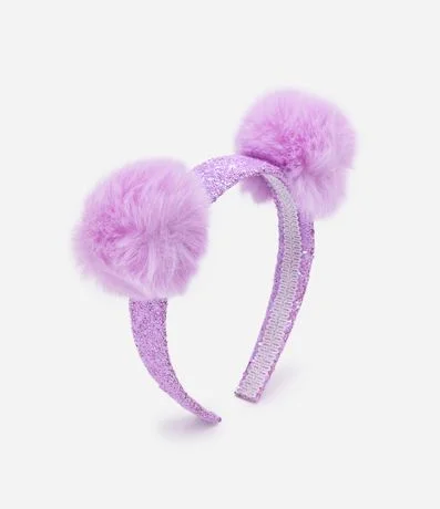 Ref: Tiara infantil larga, que traz praticidade para ajeitar os cabelos das pequenas. Possui dois pompons e forrada por glitters.