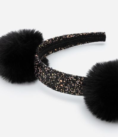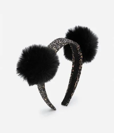 Tiara infantil com pomponzinhos e brilhos, também conhecida como arquinho ou faixa, entre outros. E não à toa, já que a tiara serve, prioritariamente, para evitar que o cabelo ou a franja caia no rosto. Unindo práticidade e deixando o lookinho ainda mais moderno.