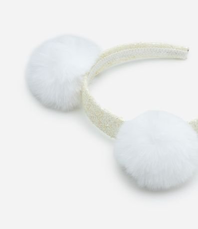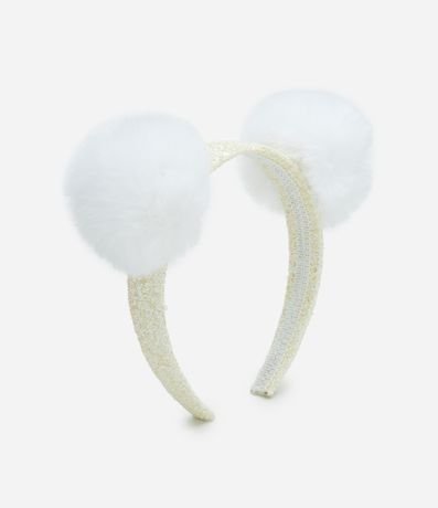 Tiara infantil com efeito metalizado e dois pompons grandes.