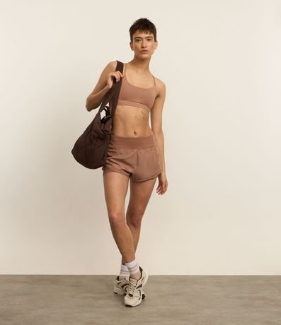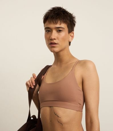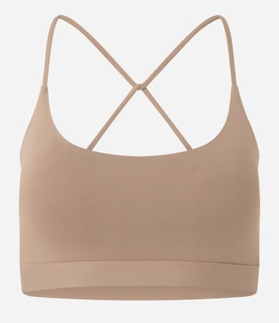 Ref: Top esportivo confeccionado em microfibra sem estampa. A peça tem costas diferenciadas, mais abertas e alças finas cruzadas.