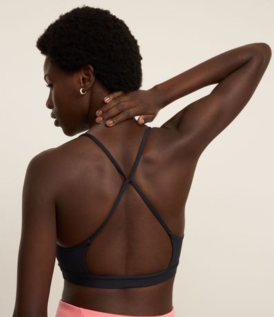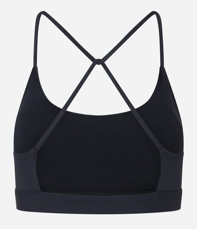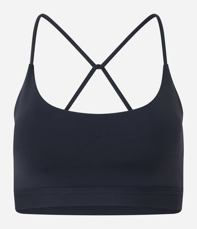 Ref: Top esportivo confeccionado em microfibra sem estampa. A peça tem costas diferenciadas, mais abertas e alças finas cruzadas.