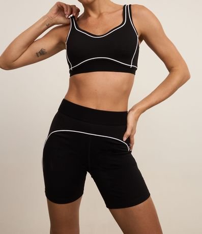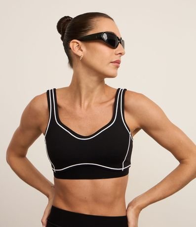 Ref: Top esportivo confeccionado em microfibra sem estampa. A peça tem alças larguinhas, bojo e vieses contrastantes.