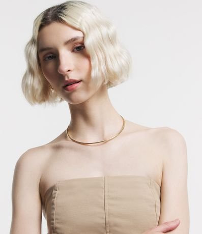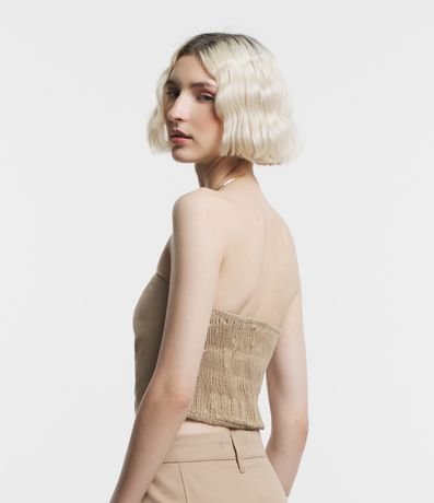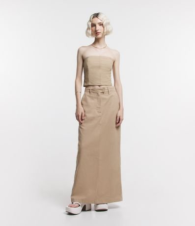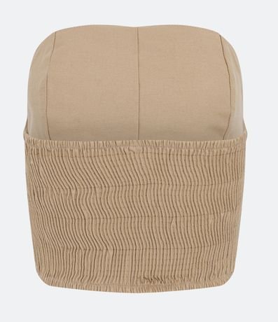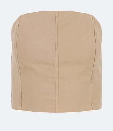 Ref: Top corsetado em sarja com decote tomara que caia além de recortes verticais na frente e lastex nas costas.