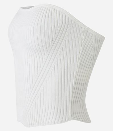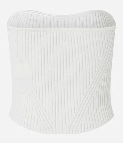 Top com modelagem corsetada confeccionado em viscose com decote tomara que caia e textura listrada.
