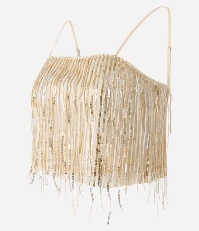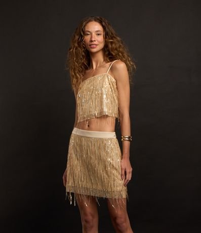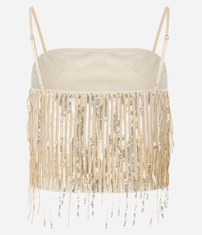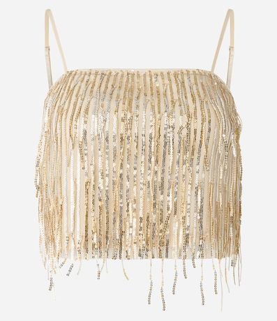 Top sem mangas com alcinhas finas reguláveis. O glamour do fit se dá pelos fios de paetês metalizados!