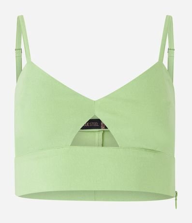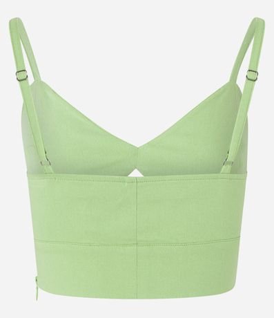 Top alça em bengaline com decote V e abertura abaixo do decote.