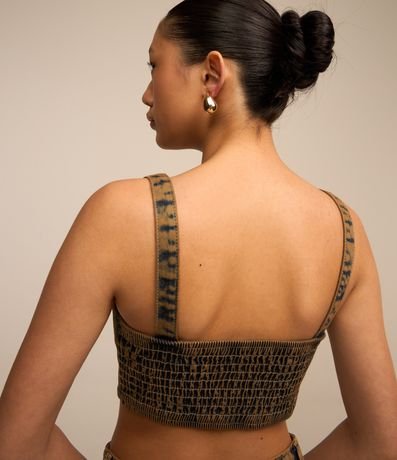 Top de Alça em Jeans Dirty Washed com Lastex