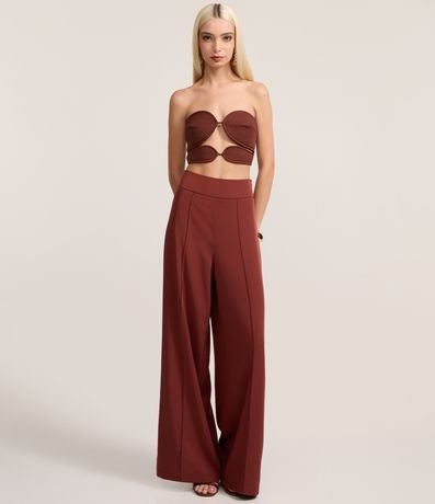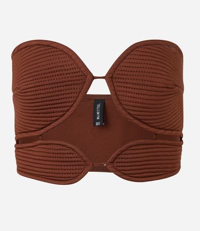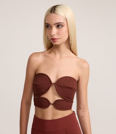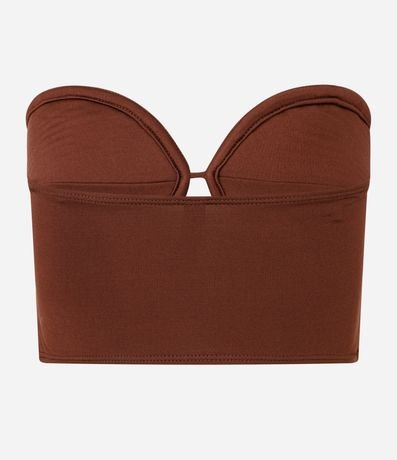 Top confeccionado em crepe, tomara que caia com busto arredondado e vazado frontal.
