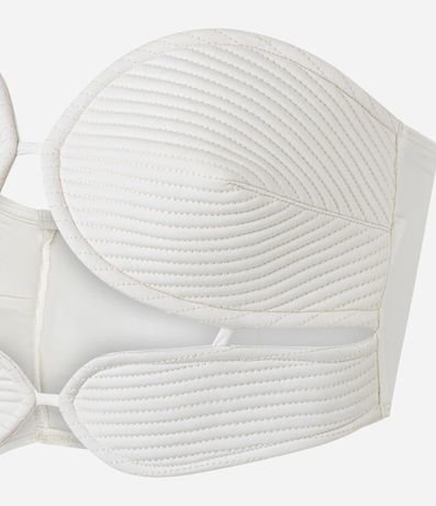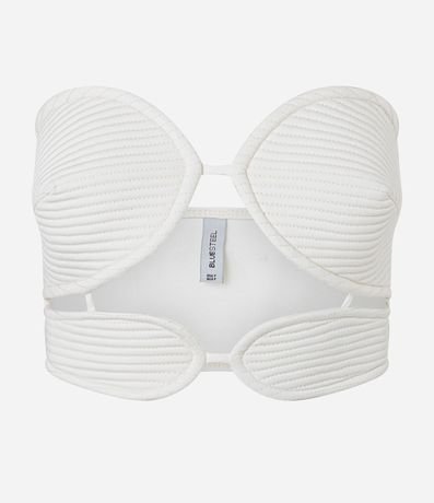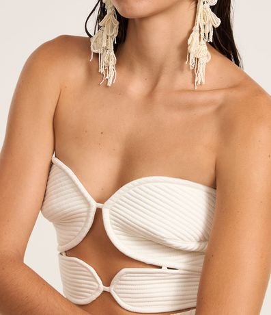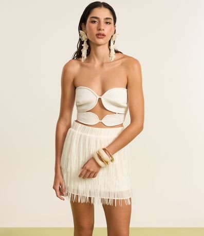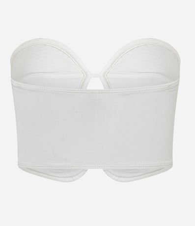 Top confeccionado em crepe, tomara que caia com busto arredondado e vazado frontal.