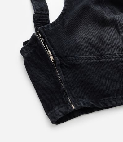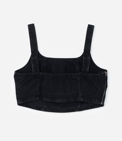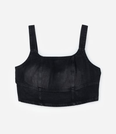 Ref: Top feminino curve & plus size, confeccionado com jeans mais sustentável em boas práticas ambientais. Peça com decote quadrado, alças médias e detalhe em recortes, ideal para completar seu look.