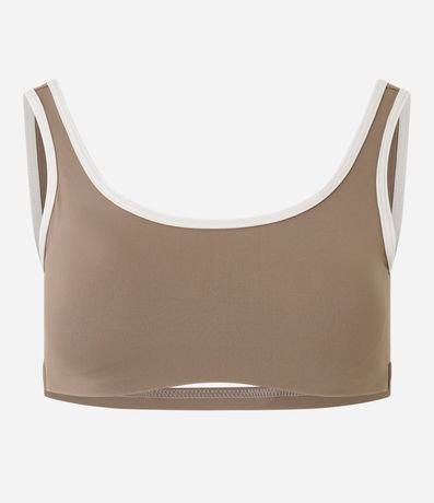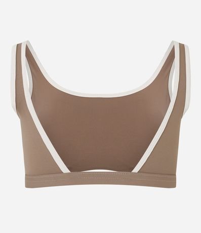 Top esportivo confeccionado em microfibra, com alças largas, bojo removível, detalhes contrastantes, decote V nas costas e decote U frontal.